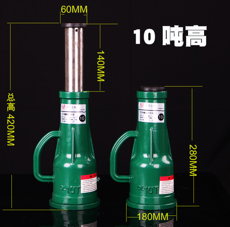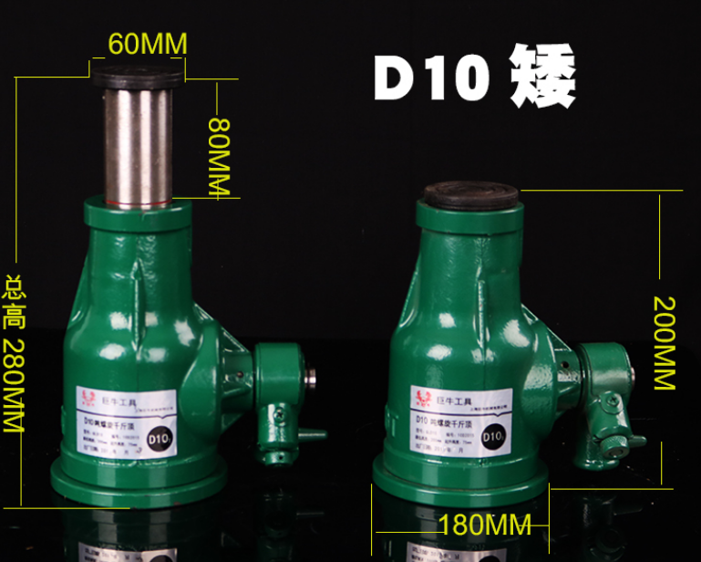 1、同噸位的螺旋千斤頂高矮胖瘦不同,比如10噸高瘦螺旋千斤頂和10噸低矮螺旋千斤頂的區分,主要區分在了頂升的高度,頂蓋的寬度,底座的寬度,和整機的高度上面,見圖可分析處來。